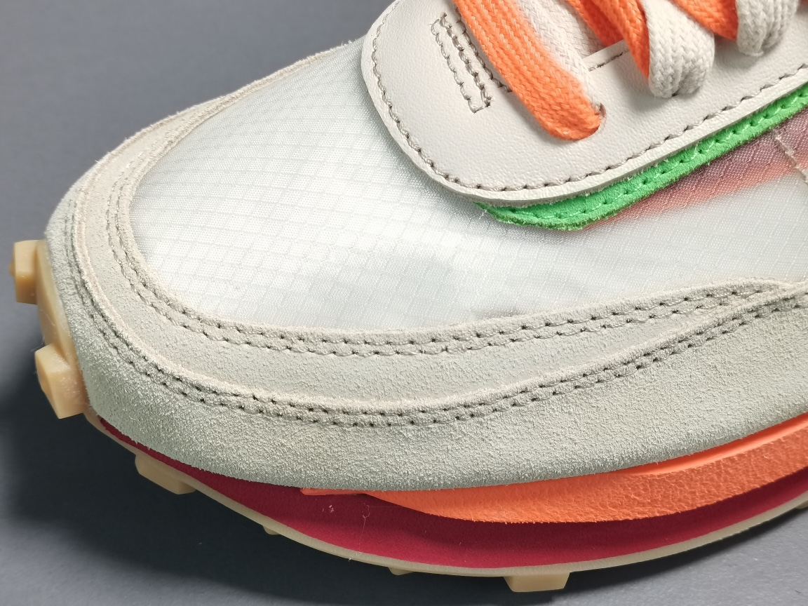 CLOT의 sacai LDWaffle은 확장된 밑창 외에도 친숙한 스택 스우시와 이중 텅이 특징입니다.