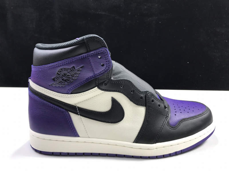 에어 조던 1 레트로 하이 OG '코트 퍼플'은 올가죽 체형을 특징으로 하며,