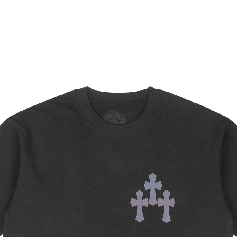 22ss 신상 홀로그램 반사 십자화 반팔 티셔츠는 비주류적인 패션에 가까운 디자인으로 가슴의 세 개의 십자가 모양의 꽃무더기,